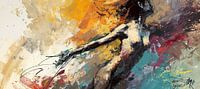 Details: abstract, straatkunst, dynamisch, goud, blauw, rood, expressief, penseelstreken, chaos, aardetinten, Raw beauty