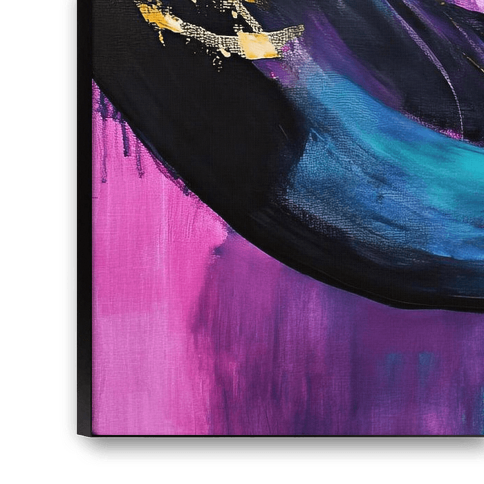 Details: abstract, schilderij, paars, blauw, geel, dynamisch, kleuren, vloeiende vormen, moderne kunst, energiek