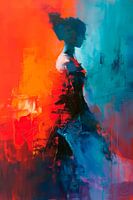 Details: vrouw, abstract, moderne kunst, rood, blauw, silhouet, expressief, dynamisch, contemplatief, kunst