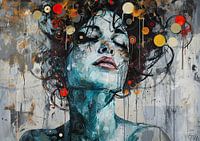 Abstract Vrouwen portret - schilderij met texturen en gelaagdheid