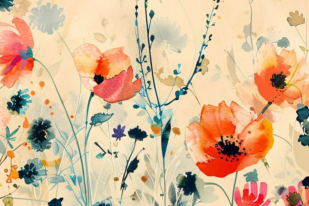 Dit levendige kunstwerk, badend in een zee van kleur, brengt de schoonheid van de natuur tot leven door middel van abstracte aquarelschilderkunst. De delicate bloemen, variërend van diepe roden tot zachte blauwen en goudgele tinten, lijken te dansen in een lichte bries. Elk element is kunstig verstrengeld met zachte, vloeiende bladeren, waardoor een rustgevend visueel spektakel ontstaat dat elke ruimte kan verfraaien. Ideaal voor liefhebbers van kunst die een toets van frisheid en levendigheid aan hun interieur willen toevoegen.
