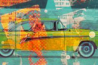 Autokunst. Een klassieke Amerikaanse auto voor een abstracte achtergrond.