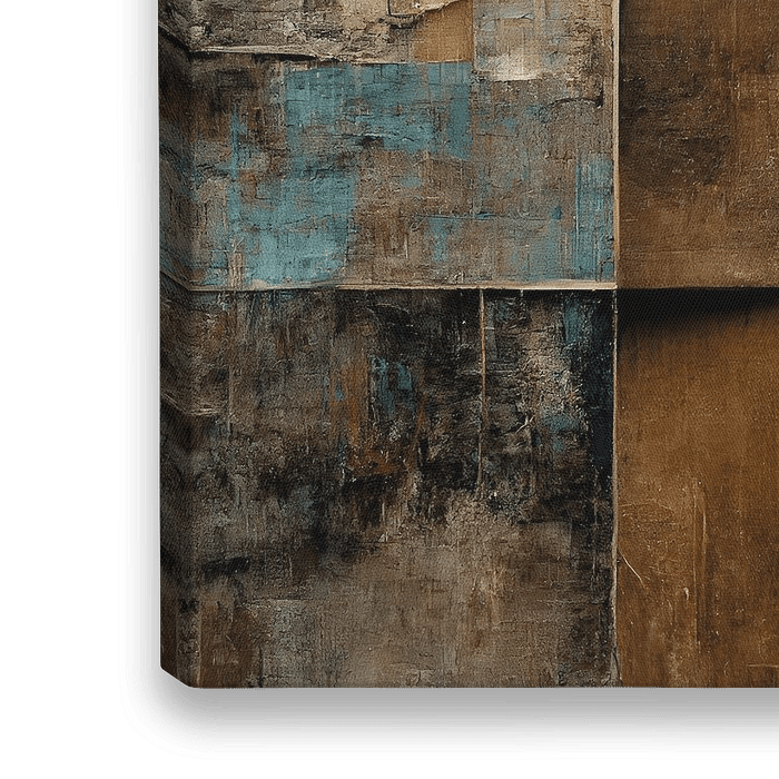Koop dit abstracte kunstwerk Abstract, beige, blauw, bruin, contrast, geometrie, grijs, linnen, modern, design, schilderijen van Color Square op canvas, aluminium dibond, (ingelijste) fotoprint, behang en ArtFrame, op maat geprint in Fine-Art kwaliteit.