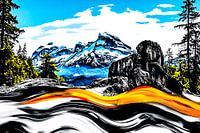 Dit ontwerp combineert de natuurlijke schoonheid van bergen met een unieke abstracte expressie van kleur en beweging. Het beeld toont een majestueus berglandschap dat wordt benadrukt door levendige kleuren en dynamische lijnen, die een gevoel van energie en diepte toevoegen. Perfect voor moderne interieurs, voegt dit kunstwerk een opvallend en eigentijds element toe aan elke ruimte. Een prachtige keuze voor wie van kunst houdt met een vleugje natuur en abstractie.