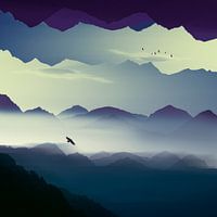 Ochtendmist boven de Zwitserse Alpen op een zomerse ochtend. Meerdere belichtingen gecombineerd met foto's in blauwe tinten.