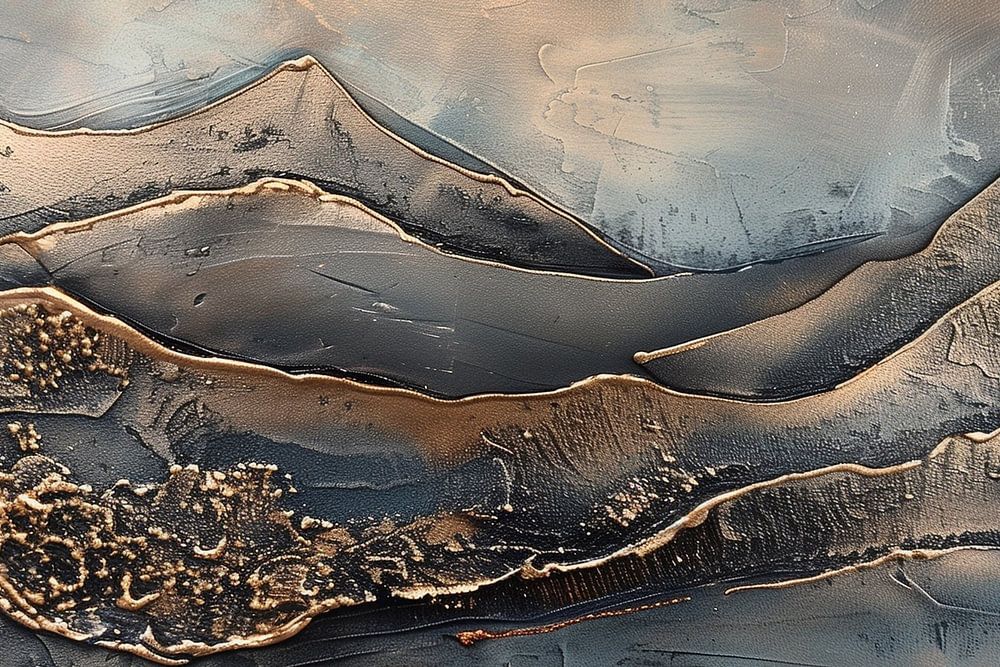 Abstract berglandschap - structuurschilderij in aardetinten met zachte gouden accenten