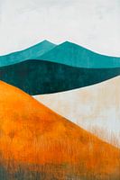 Zachte heuvels in warme aardetinten worden gecombineerd met koele blauw- en groentinten om een harmonieus landschap te creëren. De zachte, gebogen lijnen nodigen uit tot rust en ontspanning. Dit kunstwerk is bijzonder charmant in de woonkamer, waar het een uitnodigende en rustgevende sfeer creëert.