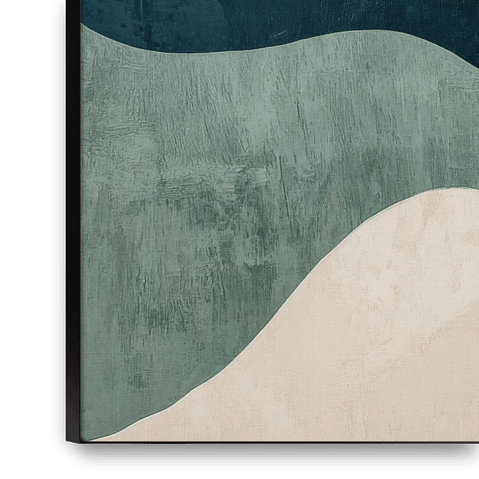 Zachte heuvels in rustgevende blauwe en aardse tinten creëren een harmonieus landschap dat uitnodigt om te dromen. De vloeiende vormen doen denken aan een ontspannen wandeling door de natuur. Ideaal voor de slaapkamer, het creëert een kalme sfeer die ontspanning en welzijn bevordert. Een perfecte blikvanger voor rustige momenten.