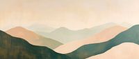 Zachte heuvels in zachte pasteltinten harmoniëren prachtig en geven elke kamer een rustige sfeer. De gebogen lijnen en zachte kleurnuances creëren een ontspannende achtergrond die perfect is voor een slaapkamer of woonkamer. Dit kunstwerk nodigt je uit om te dromen en verandert de kamer in een oase van rust.