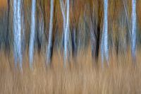 Op de Ginkelse Heide is het gras tijdens de herfst prachtig gekleurd. Dichtbij de A12 staat een groepje berkenbomen waar ik deze foto heb gemaakt. Door een lange sluitertijd te combineren met een camera-beweging probeer ik een abstract beeld te creeeren Het resultaat lijkt meer een schilderij dan een foto van een landschap.