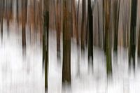 Een abstracte weergave van een stukje beukenbos in de sneeuw op de Veluwe in de herfst. Abstracte natuurfotografie.