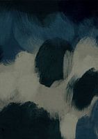 Abstract schilderij in verschillende blauwtinten met crèmewit. Minimalistisch en modern.