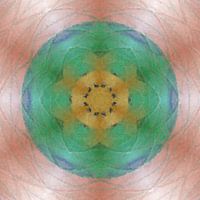 Abstract bloem mandala digitale impasto schilderij in rood blauw geel groen