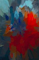 Een digitale bewerking van een afbeelding, zodanig dat er een modern, abstract, digitaal, sfeervol en kleurrijk beeld is ontstaan. Door de penseelstreken ontstaan er mooie gekleurde vlakken en zou je denken dat het geschilderd is. De hoofdkleuren zijn rood en blauw.