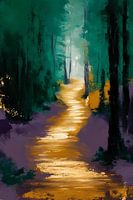 Dit schilderij brengt de serene schoonheid van een afgelegen bospaadje tot leven, met een spel van kleuren dat de kijker betovert. Diep groen en intens paars omarmen een gouden, lichtgevend pad dat je uitnodigt om verder te wandelen en te dromen. Perfect voor wie houdt van rustgevende, moderne kunst die warmte toevoegt aan elke ruimte.…