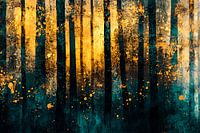 Dit kunstwerk brengt de magie van een boslandschap tot leven met een abstracte en dynamische uitstraling. De combinatie van warme gouden tinten en koele blauwen creëert een boeiend contrast dat de kijker aantrekt. Het spel van licht en schaduw voegt diepte toe, terwijl de boomstammen een sterk silhouet vormen tegen de achtergrond. Perfect als blikvanger in een moderne ruimte, dit ontwerp straalt zowel rust als energie uit. Een veelzijdig kunstwerk dat elke muur tot leven brengt!