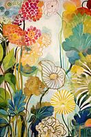 Gestileerde bladeren en bloemen vormen de basis van deze botanische compositie. De bladeren zijn uitgevoerd in zachte, aardse tinten zoals bruin en beige en staan tegen een lichte, neutrale achtergrond. De eenvoud van de vormen en het subtiele kleurgebruik creëren een sfeer van natuurlijke eenvoud en kalmte. Het is een perfecte, verfijnde keuze om een rustgevend en organisch accent aan een modern of minimalistisch interieur toe te voegen.