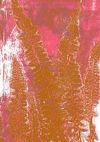 Mixed media abstracte kunst in terracotta, lila en felroze.