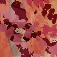 Monotype van planten, bladeren, bloemen, kruiden en grassen in warme kleuren.