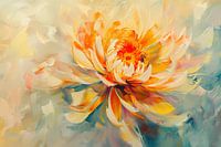 Dit schilderij van een chrysant is een prachtige aanvulling voor elke kamer. Met zijn levendige kleuren van oranje, geel, rood, blauw en wit, brengt het een gevoel van energie en vitaliteit in uw huis. Het abstracte ontwerp zorgt ervoor dat het schilderij een moderne uitstraling heeft die goed past in een eigentijds interieur. Perfect voor in de slaapkamer of eetkamer, dit kunstwerk voegt een vleugje kleur en leven toe aan uw ruimte. De dynamische penseelstreken en de intrigerende abstractie van de bloem maken dit schilderij een echte blikvanger.