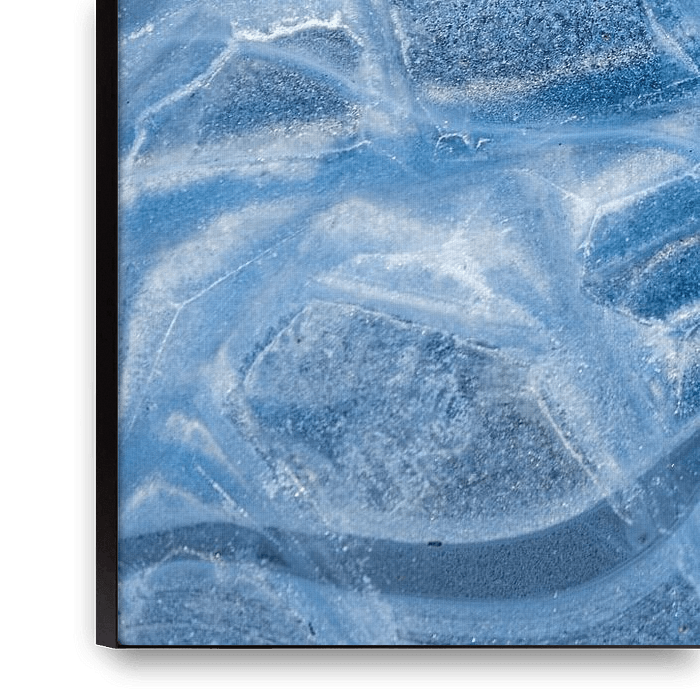 Mooie blauwe tinten in deze detailopnamen van een bevroren waterplas.