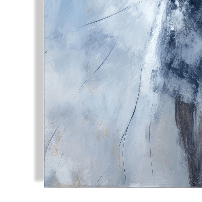 Abstract en elegant portret in blauw en wit. Indigo en kobalt. Een echte blikvanger voor je wand. Kies zelf het formaat en materiaal bij dit werk en maak het helemaal passend voor jouw interieur.