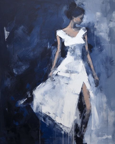 Abstract en elegant portret in blauw. Een echte blikvanger voor je wand. Kies zelf het formaat en materiaal bij dit werk en maak het helemaal passend voor jouw interieur.