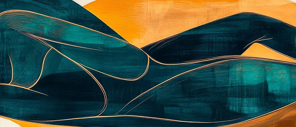 Verpakt in zachte, gebogen vormen straalt het ontwerp rust en elegantie uit. De harmonieuze combinatie van diepblauw en warm oranje nodigt uit om te ontspannen. Dit kunstwerk is ideaal voor een slaapkamer of meditatieve ruimte en creëert een sfeer van sereniteit en intimiteit.