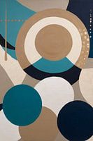 Dit unieke abstracte ontwerp kenmerkt zich door een speelse en toch strakke combinatie van geometrische vormen. Cirkelpatronen, lijnen en een warme kleurkeuze van beige, bruin, blauw en zwart zorgen voor een moderne uitstraling. Dit kunstwerk is perfect voor liefhebbers van minimalistisch design, met een vleugje dynamiek door het…