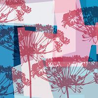 Abstract geometrisch met grote bloemen in roze en blauw van Dina Dankers