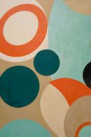 Dit moderne ontwerp straalt rust en eenvoud uit door zijn minimalistische aanpak en het gebruik van geometrische vormen. De cirkels en ellipsen in verschillende kleuren zoals oranje, groen, en crème creëren een harmonisch geheel dat in elk interieur past. De zachte maar opvallende kleurcombinaties maken dit stuk een ideale keuze voor wie houdt van eigentijdse kunst. Dit ontwerp past perfect in verschillende ruimtes, zoals een woonkamer of eetkamer, waar het als een subtiel maar boeiend middelpunt kan dienen. Laat je interieur stralen met deze abstracte, kleurrijke creatie, die zowel modern als tijdloos aanvoelt. Een ware blikvanger voor liefhebbers van minimalisme en geometrische vormen.