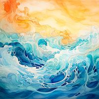 De golven zelf zijn geabstraheerd tot vloeiende, organische vormen die het gevoel van dynamiek en leven in de zee overbrengen. Ze lijken te dansen op het ritme van de zeebries en de stroming van het water.
