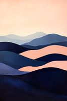 Zachte, harmonieuze golven dansen in diepblauwe en zachtroze tinten, terwijl de lucht schittert in delicate pasteltinten. Dit abstracte landschap straalt rust en sereniteit uit en is perfect om een ontspannen sfeer te creëren in de slaapkamer of woonkamer. Ideaal voor een kamer die uitnodigt om te dromen en te vertoeven.