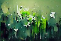 Dit werk combineert groene tinten met een intrigerende mix van abstracte vormen en texturen. De verschillende lagen en nuances in het groen geven diepte en dynamiek, terwijl subtiele accenten zorgen voor een gebalanceerd geheel. De afwisseling tussen zachte en meer uitgesproken lijnen creëert een spel van beweging en rust, waardoor het werk uitnodigt tot interpretatie en reflectie.