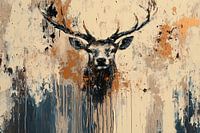 Dit abstracte schilderij van een hert combineert een moderne benadering van kunst met een natuurlijk onderwerp. De krachtige contouren van het gewei en het gezicht van het hert worden omlijst door dynamische verfpatronen die een gevoel van beweging en energie creëren. Het kleurenschema, met warme oranje en bruine tinten in contrast met koele beige en grijze accenten, geeft het kunstwerk een unieke balans. De ruwe penseelstreken en verfspatten zorgen voor een expressieve stijl die perfect past in een moderne interieurstijl. Dit opvallende stuk voegt een vleugje natuur en abstractie toe aan elke ruimte en trekt direct de aandacht van de kijker.