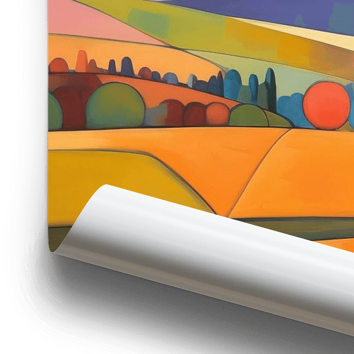 Breng een warme, natuurlijke sfeer in je huis met dit rustgevende werk. Het biedt een abstracte interpretatie van een glooiend heuvellandschap.