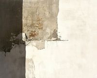 Abstract in Aardetinten - Dit is een abstract schilderij met aardetinten en een opvallende structuur van vergrijsd materiaal dat overgaat in een licht gekleurde achtergrond, waardoor een gevoel van ruimte en textuur ontstaat.