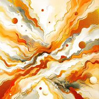 Een illustratie in aarde kleuren en goud gecreëerd met A. I. en digitaal bewerkt. Impressie van de aarde en hemellichamen .