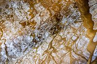 Abstract in de natuur gefotografeerd in een bosrijke omgeving waar een brede sloot meandert in de natuur. De zon liet zich maar even zie en de wind maakte de golden in het koude water, het is namelijk winter.
