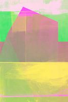 Abstract digital art werk in felle kleuren: roze, geel en groen. Mooi in zowel groot als klein formaat.