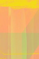 Abstract schilderij, gedrukt in transparante lagen die elkaar overlappen, in geel oranje en groen. Contemporary design.