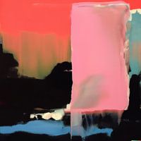 Abstract in warme en felle kleuren. Contemporary art in rood, roze, blauw, wit en zwart.