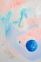Zachte pasteltinten combineren delicate texturen en levendige kleurspatten om een harmonieuze dans te creëren. De opvallende blauwe stip trekt alle blikken naar zich toe en geeft de kamer een kalme diepte. Ideaal voor de slaapkamer, het creëert een ontspannen sfeer die uitnodigt om te dromen en revitaliseert de zintuigen.