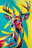 Dit kleurrijke en opvallende ontwerp van een hert brengt direct energie en levendigheid in elke ruimte. Met een dynamische mix van felle tinten zoals geel, roze, turquoise en blauw, heeft het hert in dit schilderij een moderne en abstracte uitstraling. De vloeiende lijnen en levendige penseelstreken geven het een unieke visuele aantrekkingskracht die perfect is voor liefhebbers van moderne kunst en opvallende decoratie. Het ontwerp, met zijn sterke contrasten en opvallende gewei, is een echte blikvanger in elke kamer. Ideaal voor een kantoor of woonkamer waar kleur en modern design gewenst zijn.
