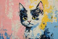 Abstract kleurrijk kattenportret schilderij van Art & Soul Creations