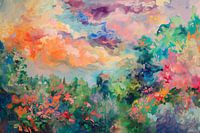Abstract kleurrijk landschap van een tuin met bloemen