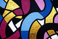 Dit kleurrijke kunstwerk straalt dynamiek en creativiteit uit, met een mix van levendige kleuren en organische vormen die in perfecte harmonie samenkomen. De abstracte stijl maakt dit ontwerp veelzijdig, perfect om elke ruimte een moderne en energieke uitstraling te geven. Het gebruik van contrasterende tinten zoals geel, roze, blauw en wit op een zwarte achtergrond creëert een opvallend en evenwichtig geheel. Of het nu in een slaapkamer, kantoor of woonkamer wordt geplaatst, dit kunstwerk trekt direct de aandacht en geeft een unieke, eigentijdse sfeer aan de ruimte. Perfect voor kunstliefhebbers die houden van expressieve en abstracte stijlen.