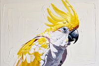 Dit levendige ontwerp vangt de essentie van een majestueuze kaketoe in een abstracte en expressieve stijl. De felle, rijke kleuren zoals geel en wit vormen een prachtig contrast tegen de neutrale achtergrond, waardoor de vogel echt opvalt. Het gebruik van dikke, vloeiende penseelstreken geeft het geheel een dynamisch en energiek gevoel. Dit kunstwerk brengt een unieke sfeer in elke ruimte, vooral in moderne interieurs waar kleur en expressie een belangrijke rol spelen. Perfect voor een woonkamer, kantoor of slaapkamer, dit schilderij brengt een vrolijke en stijlvolle toets in je interieur en geeft een subtiele natuurlijke uitstraling met een moderne twist.