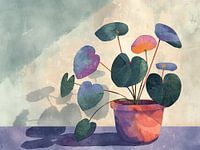Abstract kleurrijke kunst - Plant minimalistisch interieur. Hedendaagse Japandi stijl.
