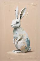 Dit bijzondere ontwerp toont een abstract konijn dat subtiel tot leven komt in zachte, neutrale tinten. Het ontwerp straalt eenvoud en rust uit door de minimalistische weergave van het dier, terwijl de grove penseelstreken en de verftextuur diepte en karakter toevoegen. Het konijn is op een zachte, beige achtergrond geplaatst, waardoor het kunstwerk harmonieus en geschikt is voor diverse interieurs. Dit schilderij past perfect in een moderne of minimalistische omgeving, zoals een slaapkamer of een kantoorruimte. Het is een tijdloos stuk dat zowel liefhebbers van abstracte kunst als dierenliefhebbers zal aanspreken.